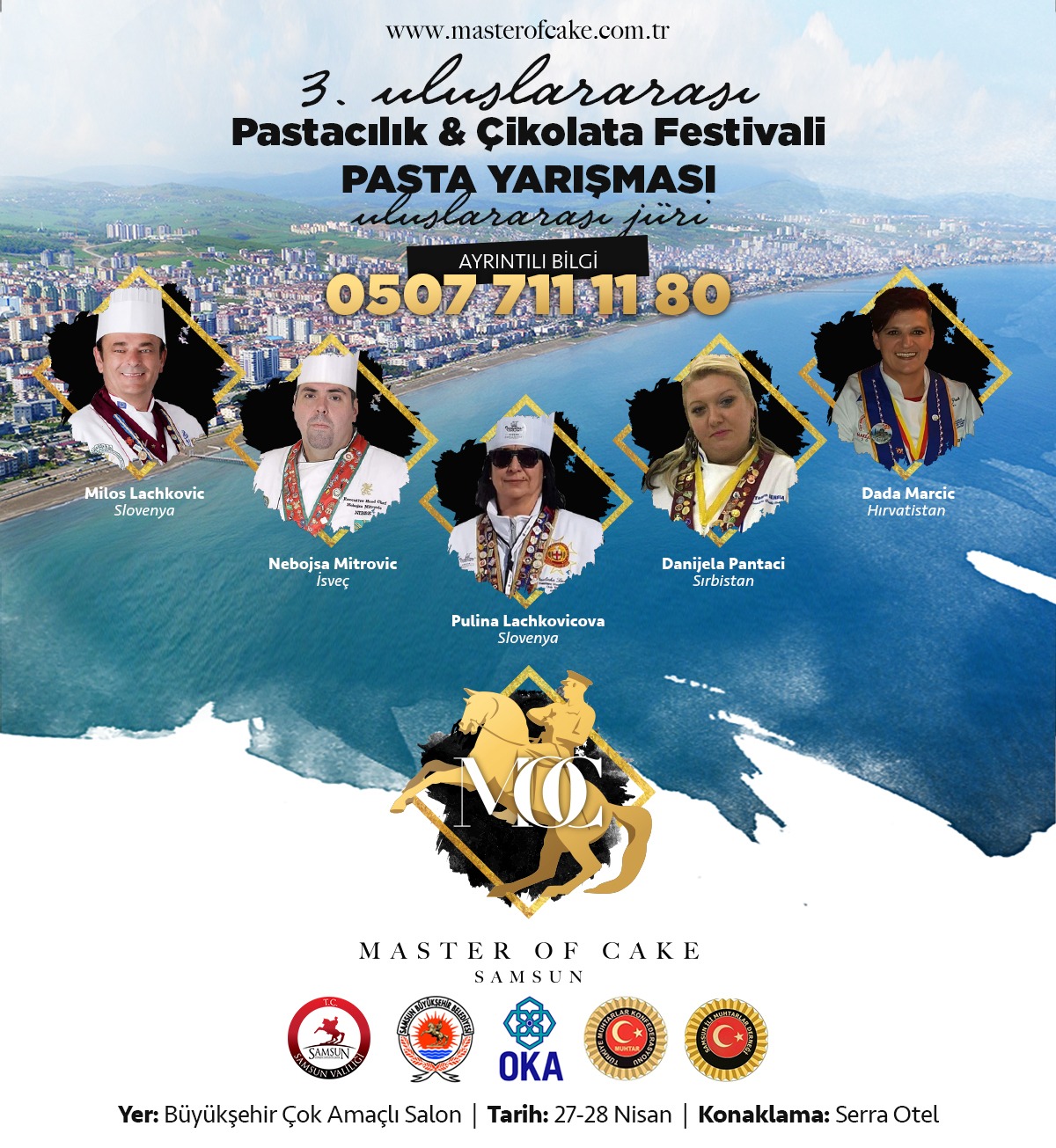 Bu yıl Samsun’da düzenlenecek “3.Uluslararası Master Of Cake Samsun Pasta yarışması ve Pastacılık & Çikolata festivali” nin hazırlık çalışmaları başladı. Festival Samsun Büyükşehir Belediyesi Çok amaçlı salonunda 27-28 Nisan 2019 tarihlerinde gerçekleşiyor. Samsun valiliği, Samsun Büyükşehir Belediyesi ve Orta Karadeniz Kalkınma Ajansı OKA işbirliği ile düzenlenen Festival kapsamında yapılacak olan yarışmaya katılım için son başvuru tarihi ise 12 Nisan 2019.