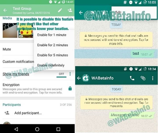 Önceki özellik her ne kadar ilişkilerin geleceğini kurtarsa da WhatsApp’ın diğer bir özelliği ise sevgilinize ya da eşinize olduğunuz yeri söylememe gibi bir fırsat tanımıyor. Live Location Tracking isimli özellik sayesinde özelliği aktif eden kullanıcılar yine özelliği aktif eden arkadaşların konumlarını anlık olarak takip edebilecekler yani bir anlamda WhatsApp, Facebook’taki “Yakınımdaki Kişiler” özelliğini çok daha detaylı bir şekilde WhatsApp kullanıcılarına sunacak.